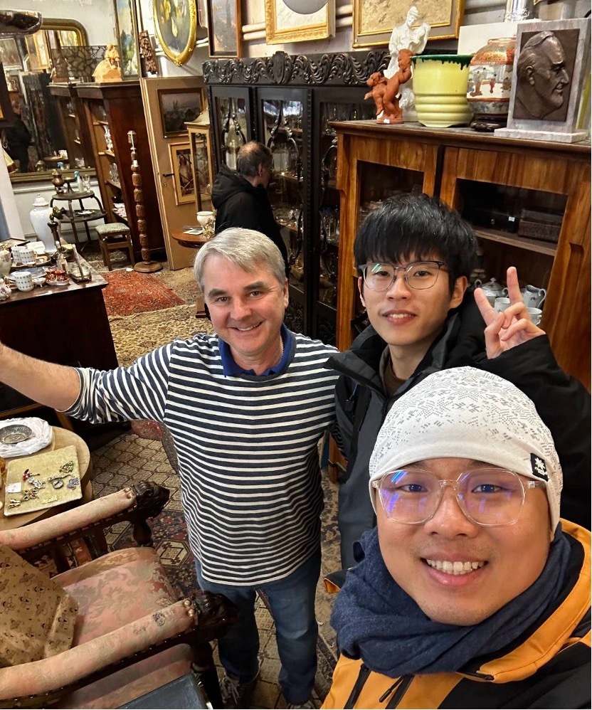 和一位台灣旅者一起探索當地舊物店,與老闆留下的合影。